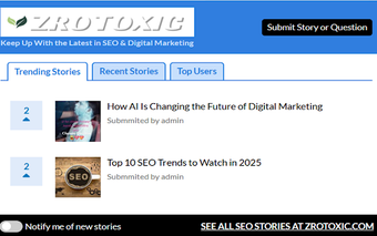 Zrotoxic News, Chrome tarayıcıları için geliştirilmiş ücretsiz bir eklentidir. Bu eklenti, kullanıcıların SEO ile ilgili en son haber ve trendleri takip etmelerini sağlar. Zrotoxic News, anlık bildirimler ile yeni hikayeler hakkında kullanıcıları bilgilendirir, böylece SEO dünyasındaki gelişmeleri kaçırmamak için ideal bir araçtır.